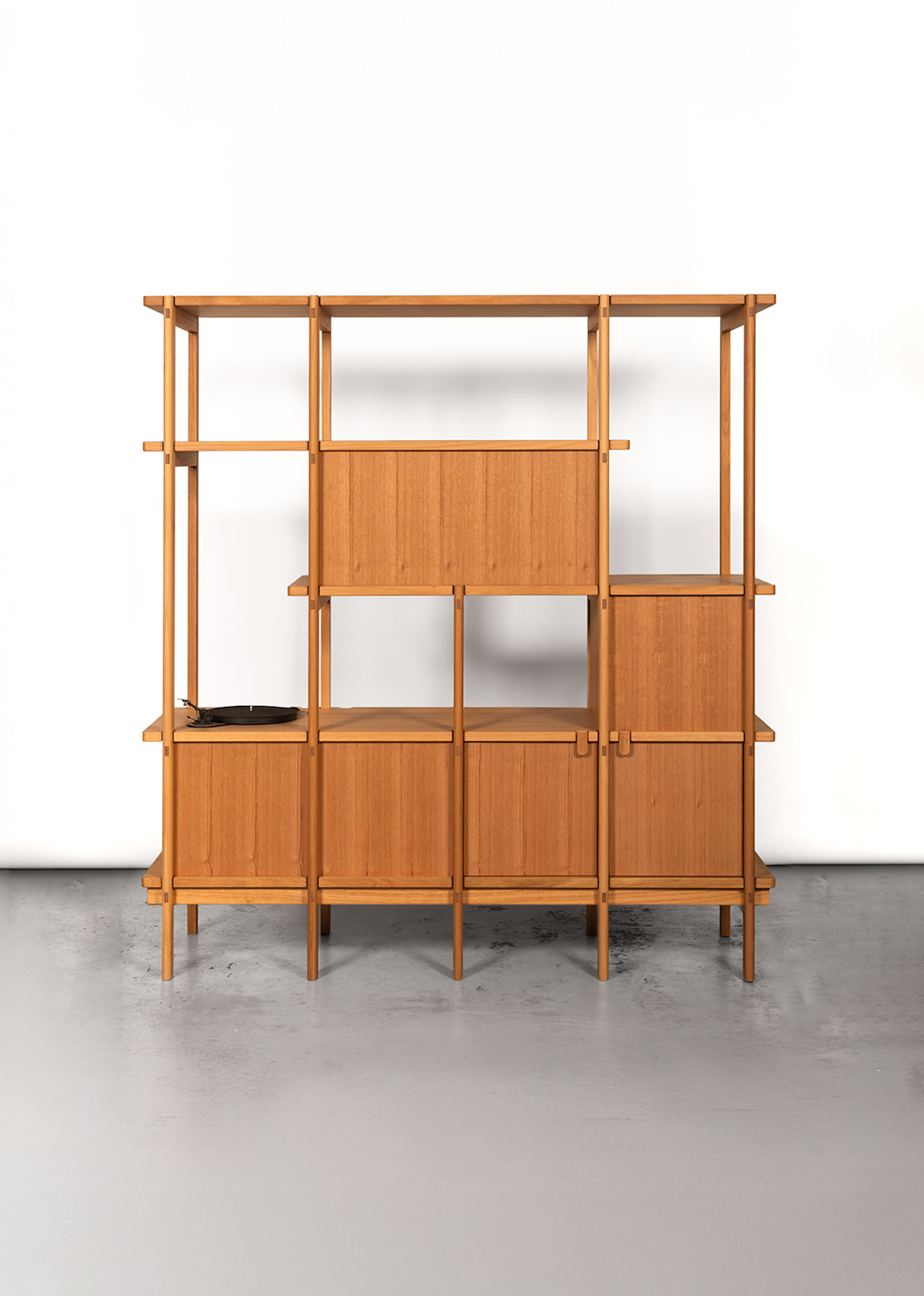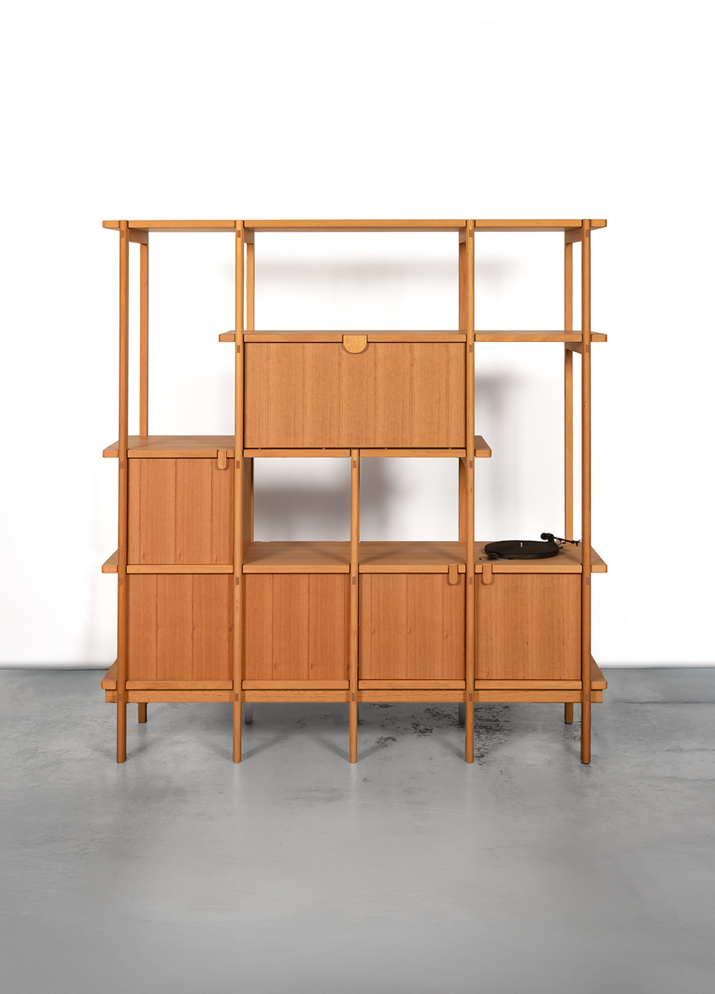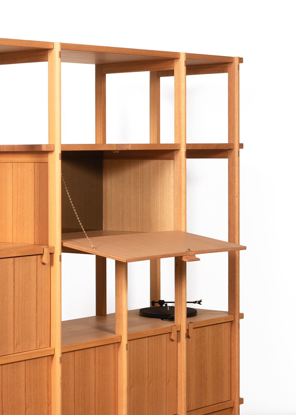 The Party Wall is a Tasmanian Oak room divider containing the essential elements for good times and good vibes. A contemporary response to the Macrob wall unit, designed and made in South Australia throughout the 1960s, it reimagines a familiar form for the present. The double-sided timber unit conceals a drinks cabinet and built-in turntable, delivering everything you need to get the party started. Manufactured locally in South Australia, 2018.