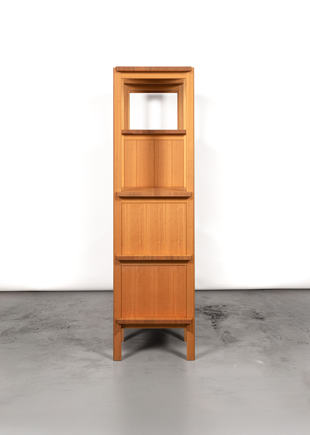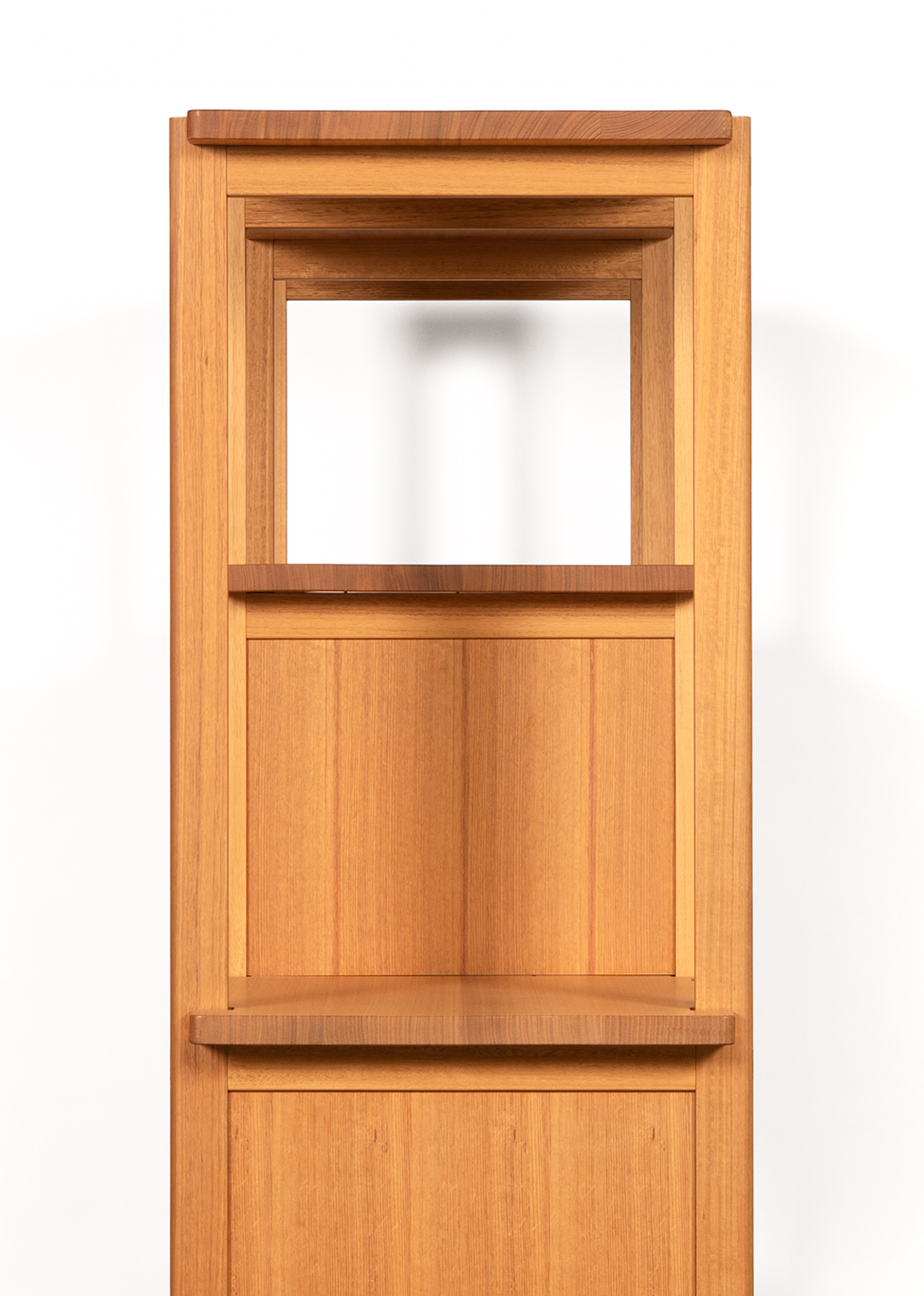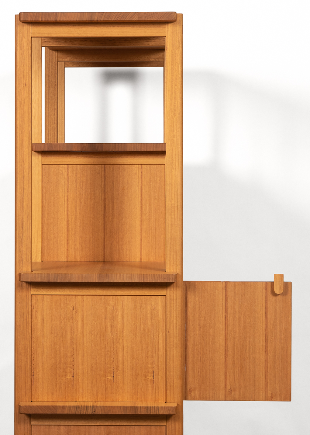 The Party Wall is a Tasmanian Oak room divider containing the essential elements for good times and good vibes. A contemporary response to the Macrob wall unit, designed and made in South Australia throughout the 1960s, it reimagines a familiar form for the present. The double-sided timber unit conceals a drinks cabinet and built-in turntable, delivering everything you need to get the party started. Manufactured locally in South Australia, 2018.